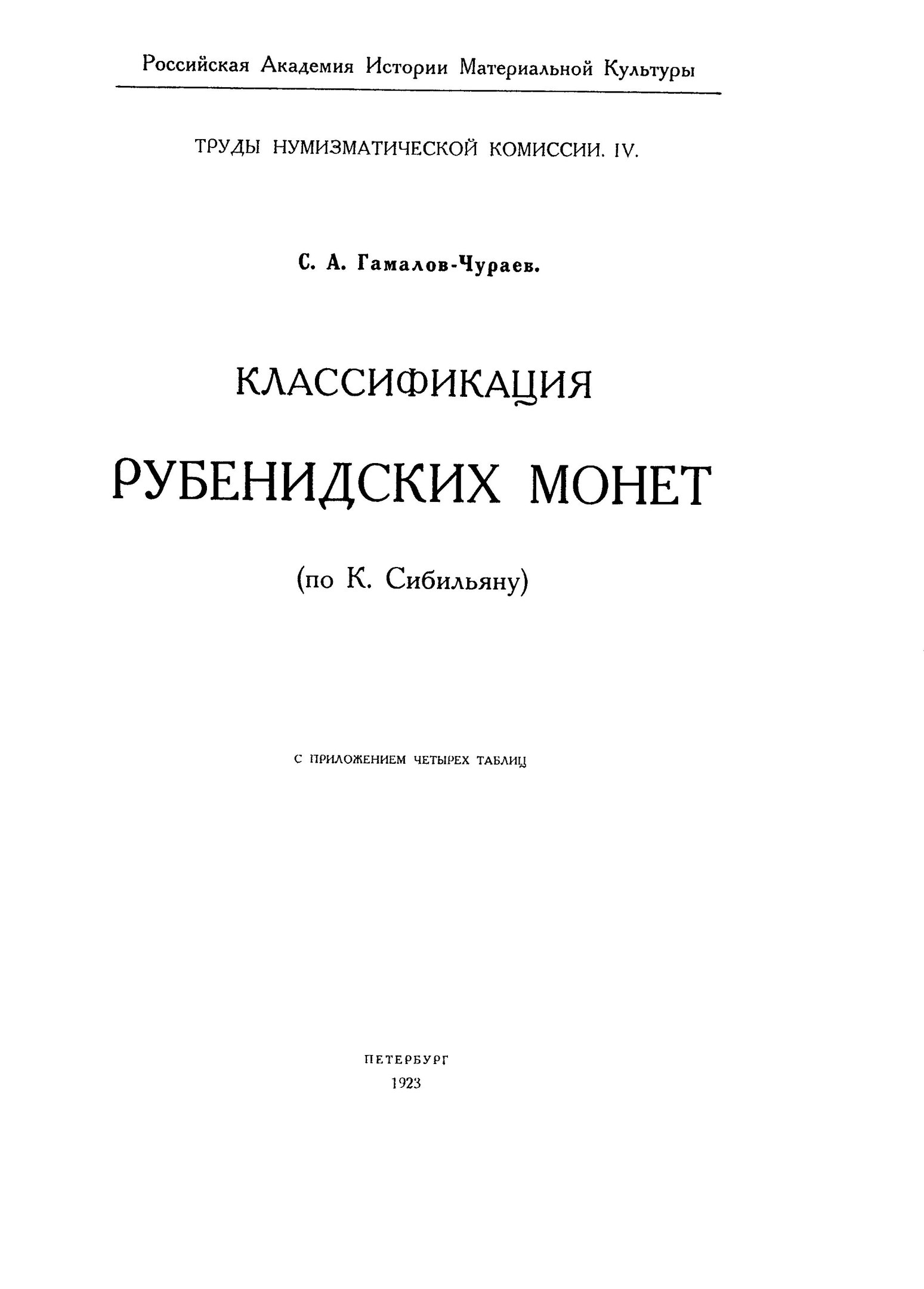 автор: Гамалов-Чураев С.А. название: Классификация Рубенидских монет по К. Сибильяну. год: 1923 формат: pdf размер: 6,78 mb
